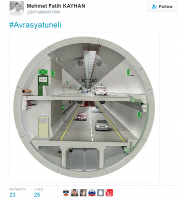 Tunelul rutier Eurasia, construit sub Marea Marmara și inaugurat astăzi de către președintele Turciei, Recep Tayyip Erdogan, reprezintă o investiție de 1,25 miliarde euro.