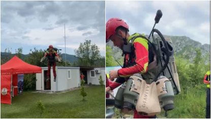 Premieră națională – Un jet-pack de zbor a fost testat de salvamontiștii din județul Alba, în cadrul unui exercițiu de salvare al DSU. Pilotul s-a ridicat de la sol din Baza Salvamont de la Rîmetea, pentru a recupera o potențială persoană rănită într-o drumeţie, pe crestele montane din Piatra Secuiului. Drumul a fost parcurs într-un timp record.