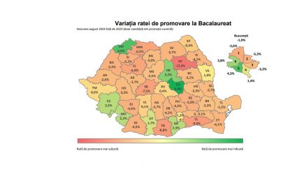 Doar în 12 județe s-a înregistrat o rată de promovabilitate mai mare comparativ cu sesiunea de anul trecut, în rest sunt mai puțini absolvenți care au reușit nota de trecere. În județul Neamț, rata de promovare a scăzut anul acesta cu 15,9% comparativ cu anul 2023. În județul Covasna, în schimb, a crescut cu 6% numărul candidaților admiși în sesiunea de toamnă 2024 față de anul trecut.