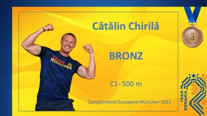 Sportivul român Cătălin Chirilă a câştigat medalia de bronz în proba de canoe simplu pe 500 de metri, duminică, la Campionatele Europene de kaiac-canoe de la Munchen.