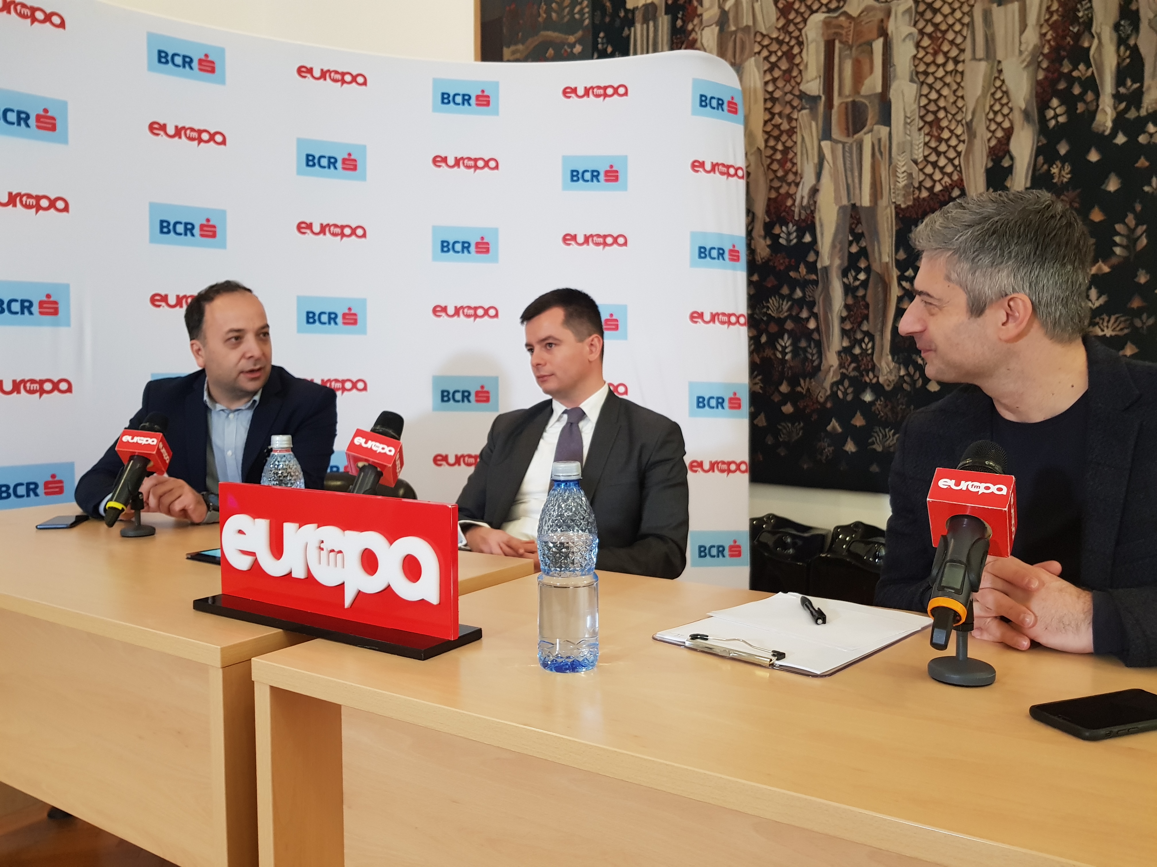 Tudor Muşat îi are alături pe Ionuț Stanimir – director de marketing și comunicare Banca Comercială Română, și Adrian Negrescu – consultant economic, manager Frames.