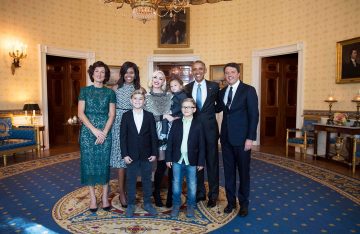 Gwen Stefani şi copiii ei au pozat pe peluza de la Casa Albă alături de cei doi şefi de state şi de soţiile lor.