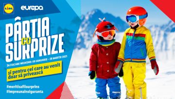 Iar în fiecare weekend, pe frecvențele Europa FM, LIDL te premiază direct de pe Pârtia cu Surprize! Prinde semnalul de concurs și răspunde printr-un mesaj audio sau text pe WhatsApp la 0728.111.222 la întrebarea dimineții. Poți câștiga carduri cadou LIDL în valoare de 300 de lei!