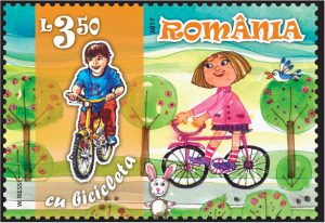”Bicicleta” este ilustrată pe timbrul cu valoarea de 3.50 lei. ”Mingea” este reprezentată pe timbrul cu valoarea de 4 lei. Un alt joc îndrăgit al copilăriei este ”Şotronul”, simbolizat grafic pe timbrul cu valoare de 4.50 lei. ”Sania şi Omul de Zăpadă” sunt reprezentate pe timbrul cu valoare de 15 lei.