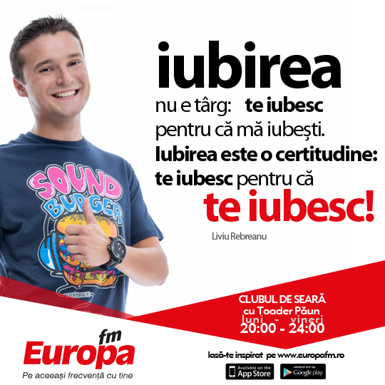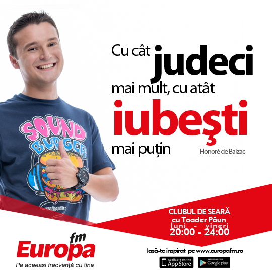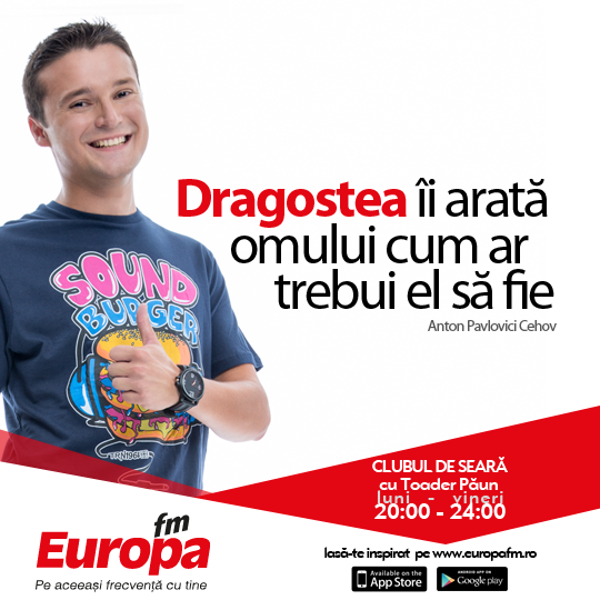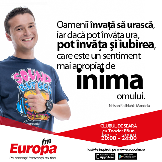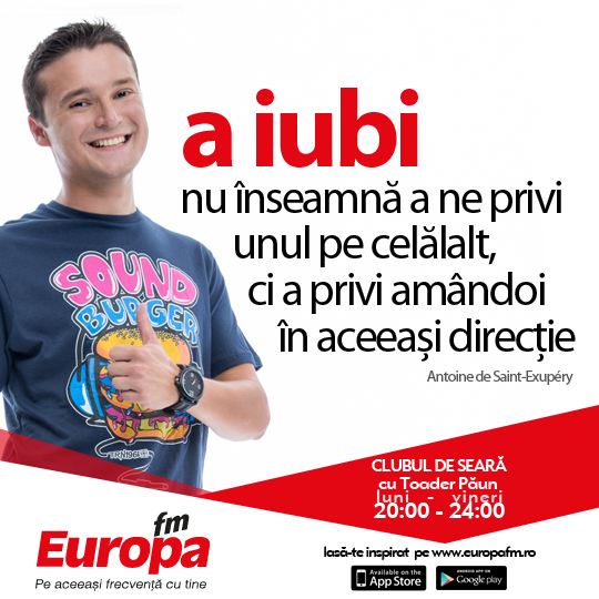 În fiecare zi, la Europa FM, Clubul de Seară te inspiră cu un citat care să te pună pe gânduri, să te deconecteze de la probleme şi să te (re)conecteze cu lucrurile cu adevărat importante.