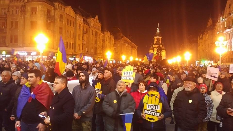 În Timișoara, un număr mare de protestatari se află în centrul orașului. Aproximativ 5000 de persoane participă la manifestația anti-guvernamentală.