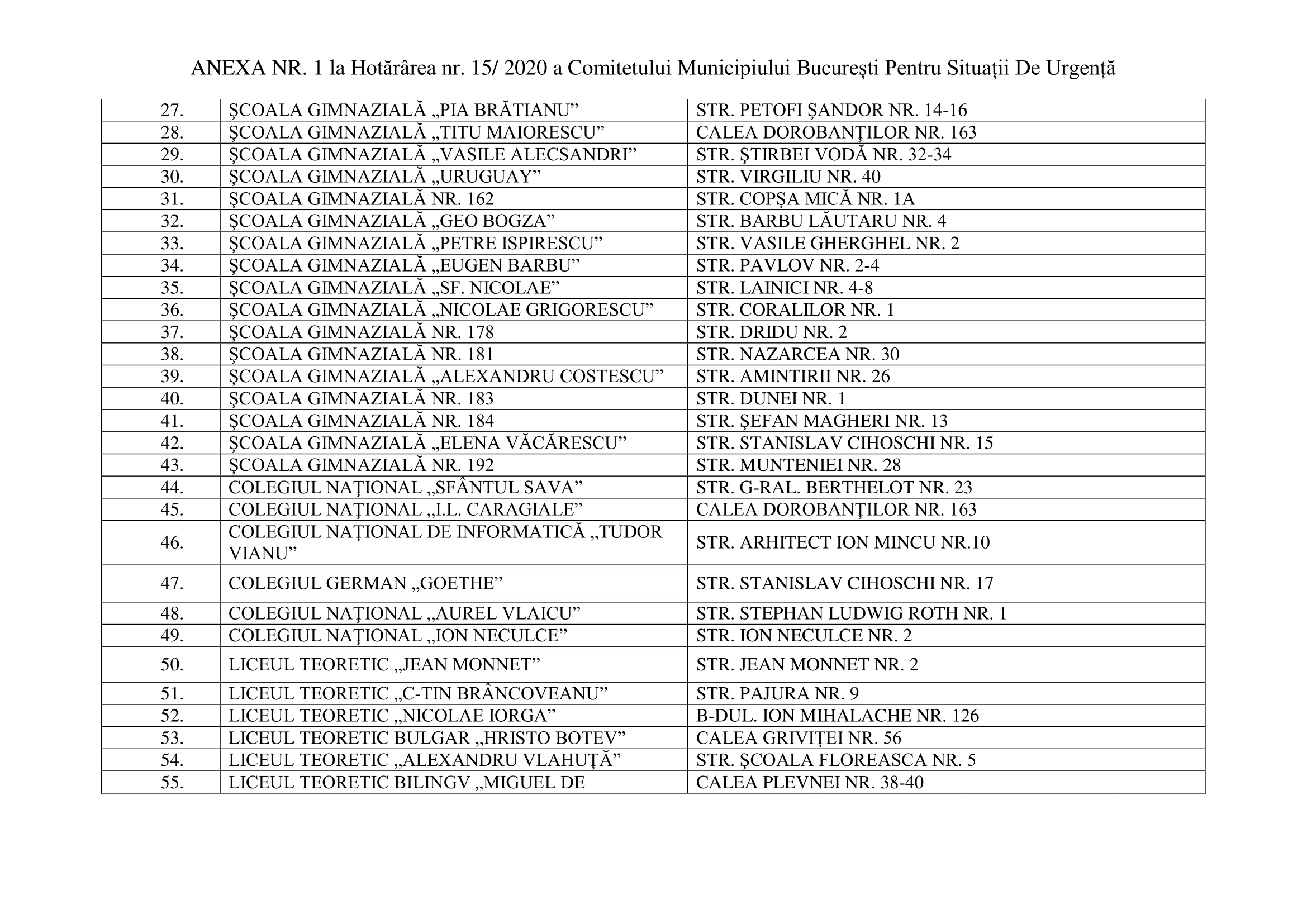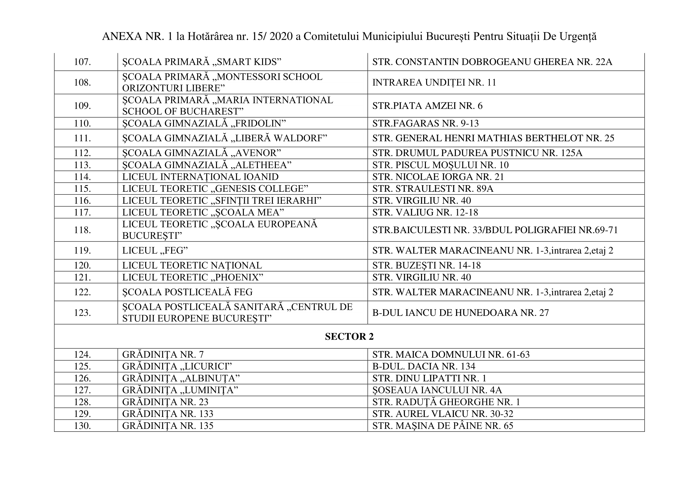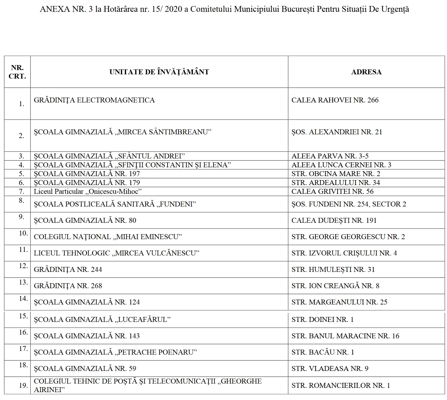 În București a fost publicată lista școlilor unde elevii nu vin din 14 septembrie sau unde se va aplica scenariul galben. Aceasta a fost anunțată de Comitetul Municipal pentru Situații de Urgență, în urma unei ședințe care a avut loc, joi seară, la Prefectura Capitalei.