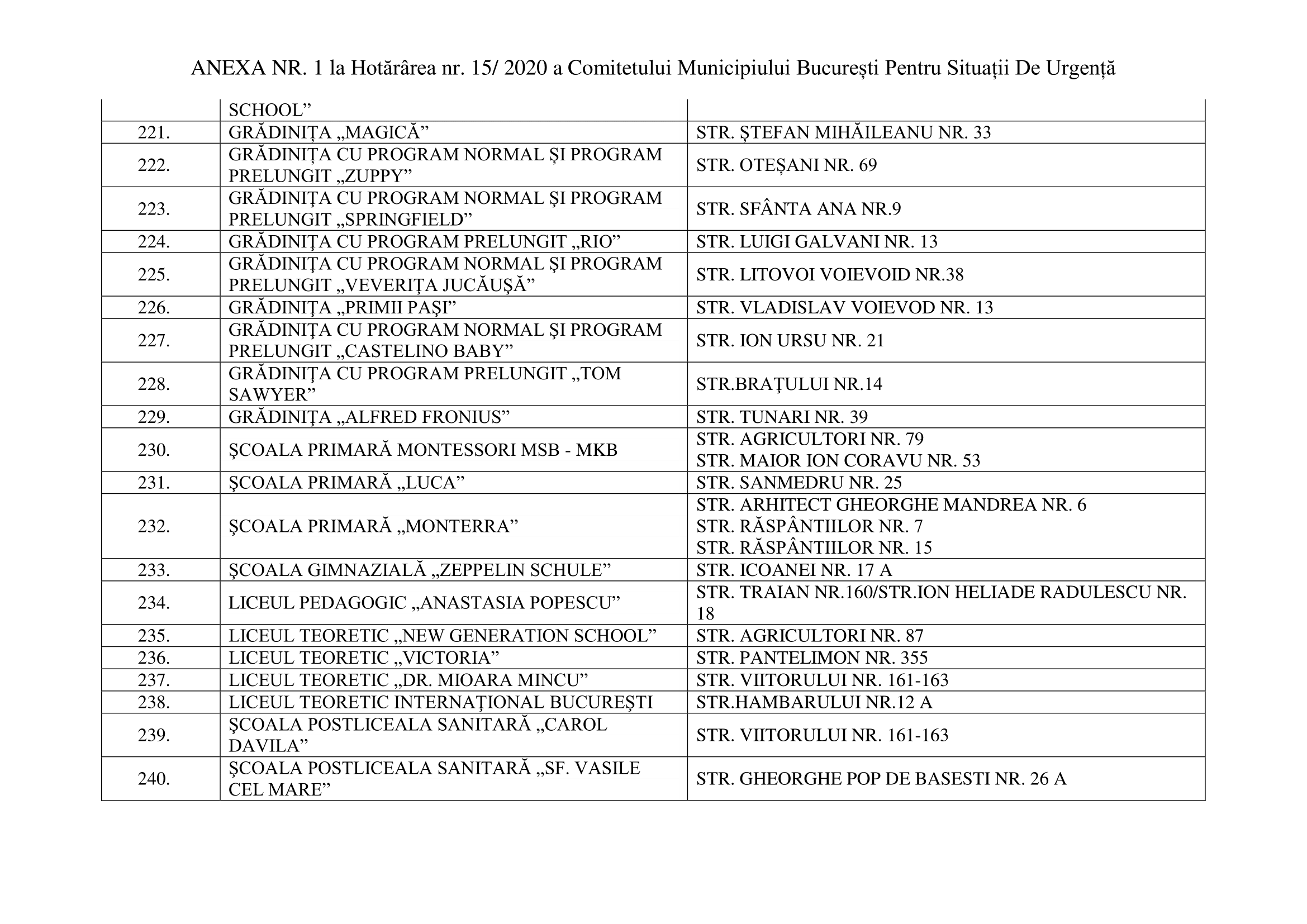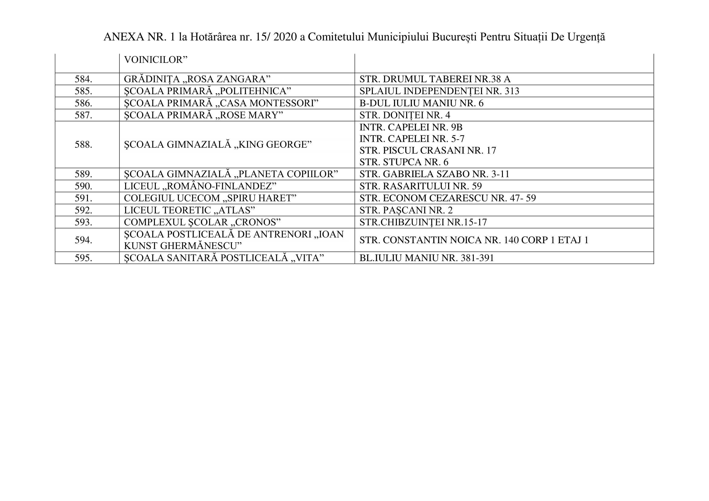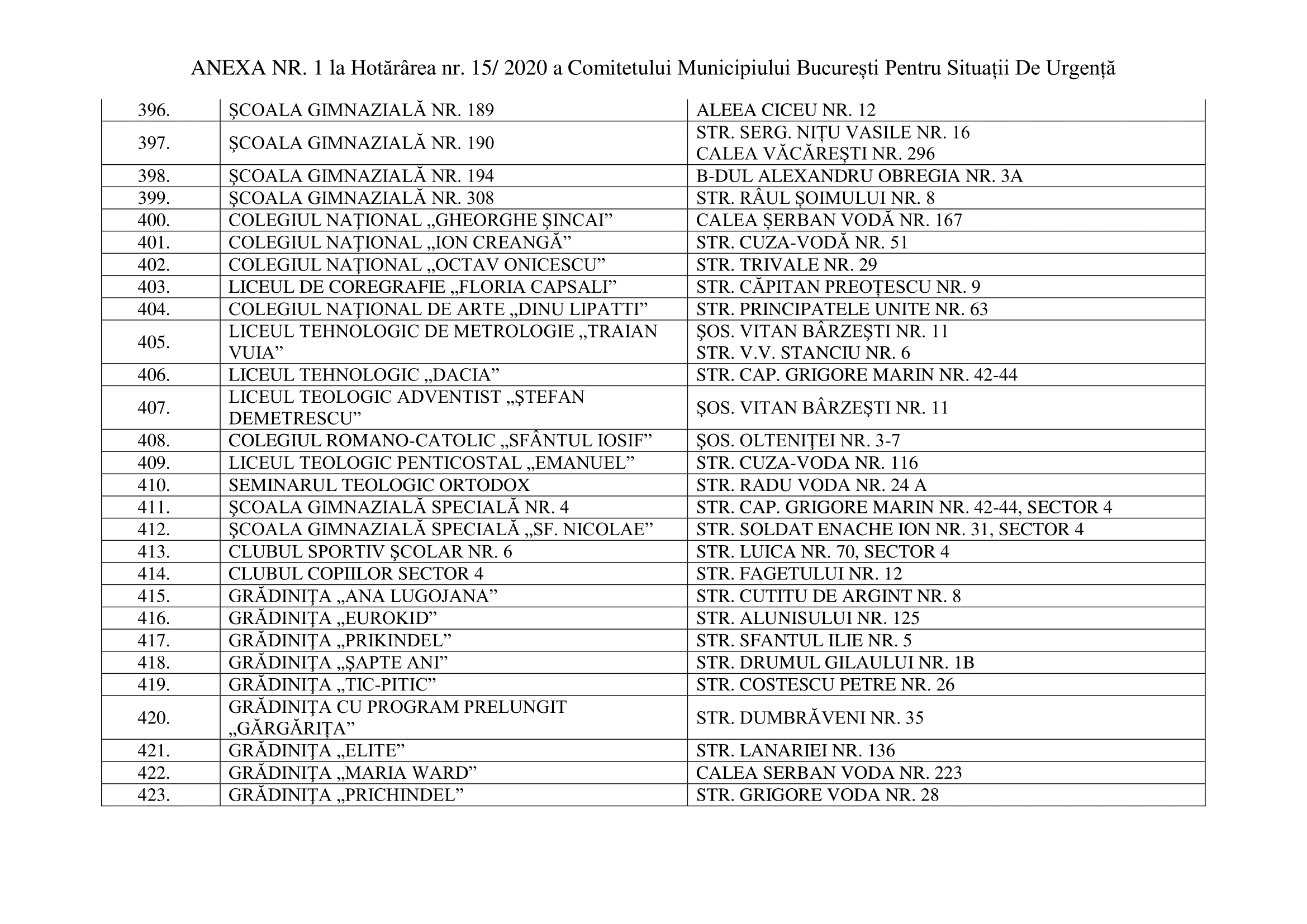 În București a fost publicată lista școlilor unde elevii nu vin din 14 septembrie sau unde se va aplica scenariul galben. Aceasta a fost anunțată de Comitetul Municipal pentru Situații de Urgență, în urma unei ședințe care a avut loc, joi seară, la Prefectura Capitalei.