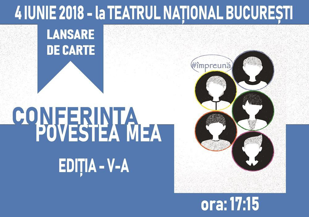 Conferința “Povestea mea” şi lansarea cărţii “#Împreună” vor avea loc pe 4 iunie 2018, la Teatrul Național București – Sala Media, începând cu ora 17:15.