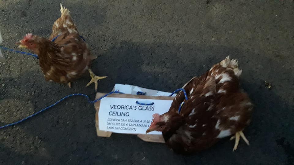 Un protestatar a venit în piaţă cu două găini în lesă. “Mesajul e pentru Viorica Dăncilă, să îi arătăm că ar trebui să facă și ea ceva mai la nivelul ei, să crească găini de exemplu”, a explicat protestatarul.