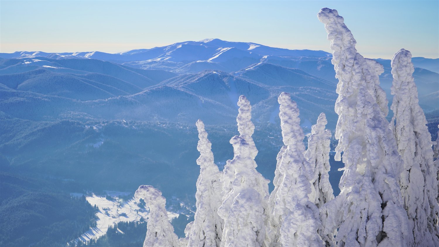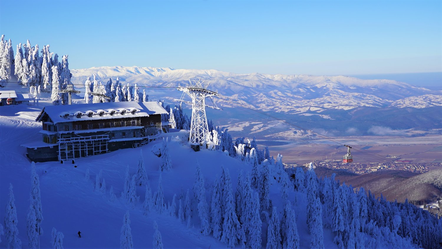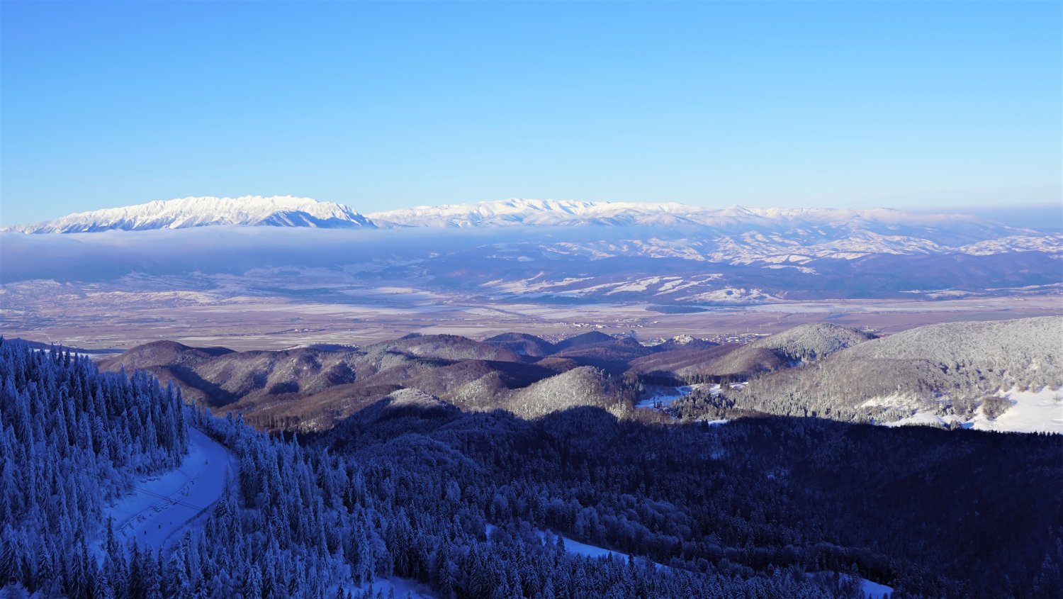 De pe Vârful Postăvarul, Brașovul și Poiana Brașov par desprinse din poveștile cu iernile de altă dată sau decorurile unor filme.