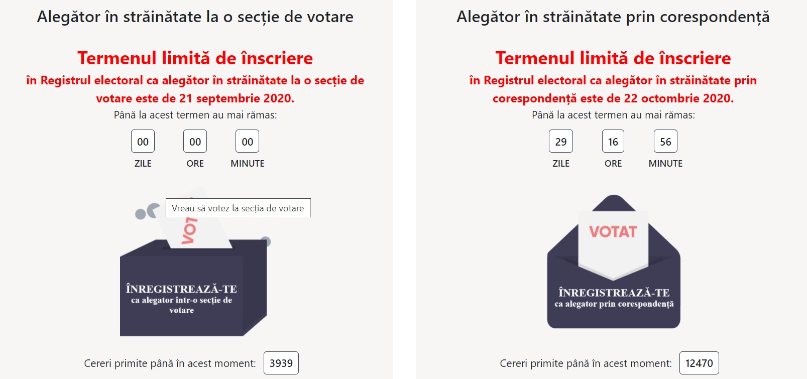 Autoritatea Electorală Permanentă anunţă că a expirat perioada în care cetăţenii români cu domiciliul sau reşedinţa în afara ţării s-au putut înregistra online cu opţiunea pentru votul la una dintre secţiile care vor fi amenajate în diaspora pentru alegerile parlamentare