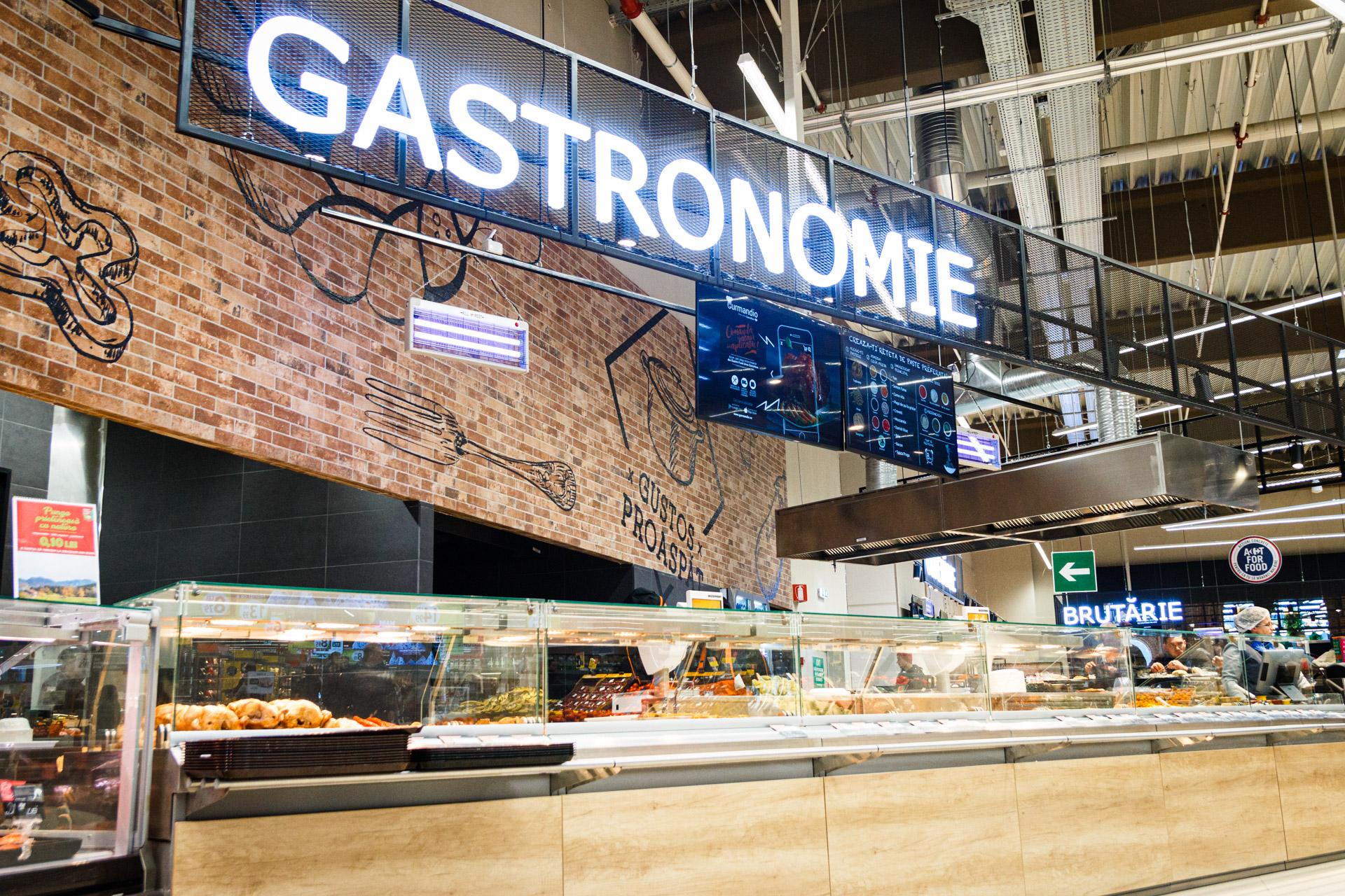 Oferta culinară este completată de cea mai variată gamă de produse BIO, live cooking zilnic în raionul de gastronomie, street food, afumătoare de pește și măcelărie, precum și legume românești proaspete de sezon, pe raft la doar 48 de ore de la culegere.