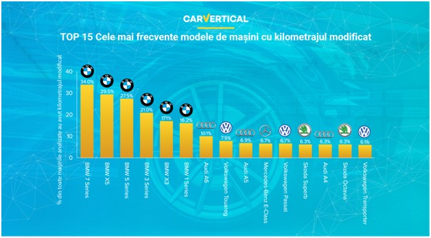 carVertical, compania care verifică istoricul mașinilor prin VIN, a efectuat cercetări pentru a afla ce mașini sunt cel mai frecvent modificate la kilometraj. Datele au fost colectate din baza de date extinsă a carVertical. Lista a arătat procentul de mașini cu kilometrajul modificat în funcție de model – pe baza tuturor modelelor de mașini analizate.
