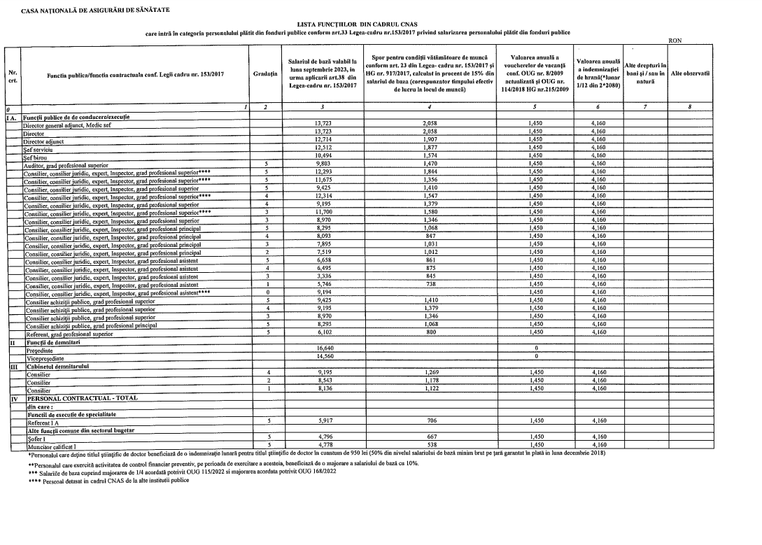 Lista funcțiilor din cadrul CNAS care intră în categoria personalului plătit din fonduri publice