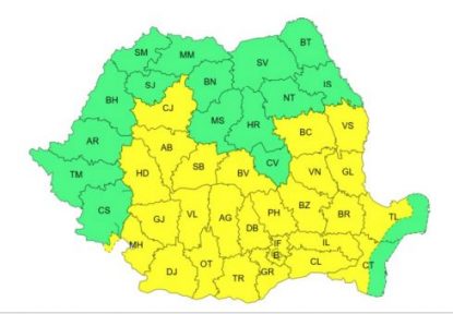 ANM: Cod galben de ploi torențiale și intensificări ale vântului în mare parte din țară | HARTĂ