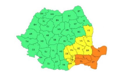 În județele Ialomița, Călărași, Constanța și Tulcea vor fi intensificări ale vântului, vijelii, cu viteze la rafală de 70…80 km/h, frecvente descărcări electrice, grindină și averse torențiale. Cantitățile de apă vor fi de 25…40 l/mp și izolat de peste 50…60 l/mp, potrivit ANM.