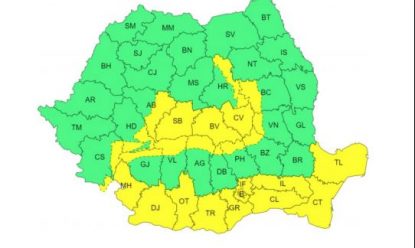 Pe parcursul zilei de sâmbătă, între orele 10:00 – 23:00, va fi în vigoare un alt Cod galben de intensificări ale vântului la munte. În Dobrogea, estul Moldovei, sud-vestul Munteniei, sudul şi vestul Olteniei şi al Transilvaniei vântul va avea intensificări, cu rafale de 50 – 70 km/h, în timp ce în Carpaţii Meridionali şi de Curbură va fi viscol, cu viteze ale vântului de 60 – 80 km/h, iar pe creste rafalele vor depăşi temporar 80 – 100 km/h.