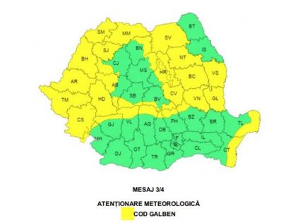 Zona montană, Banatul, Crişana, Maramureşul, cea mai mare parte a Moldovei, Transilvania şi litoralul sunt azi sub cod galben de vânt puternic.