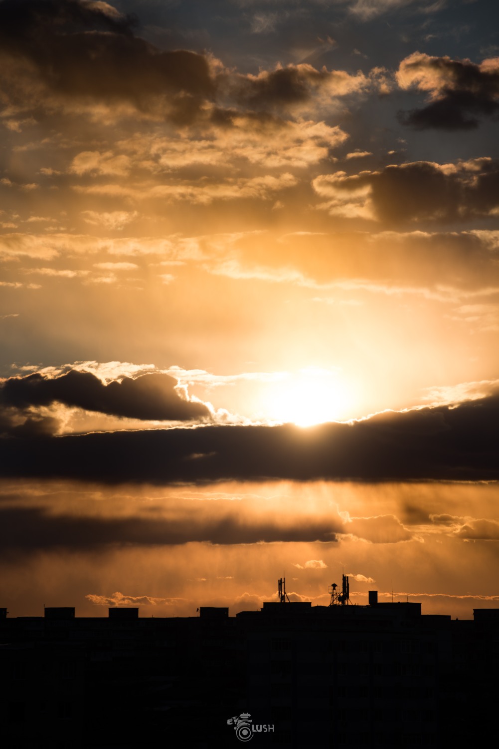 Fotograful Burlacu Lush a surprins din autoizolare, de la etajul 10 al blocului în care locuiește, un superb apus de soare, semn că și în aceste zile ne putem bucura de spectacolul naturii, chiar dacă doar de la fereastră.