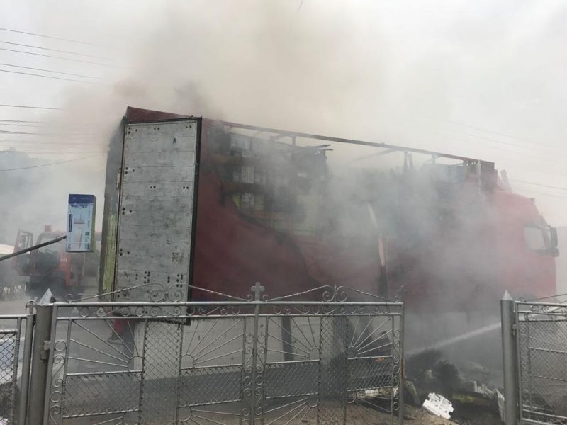 Circulaţia în zonă a fost blocată în perioada intervenţiei de stingere a incendiului.