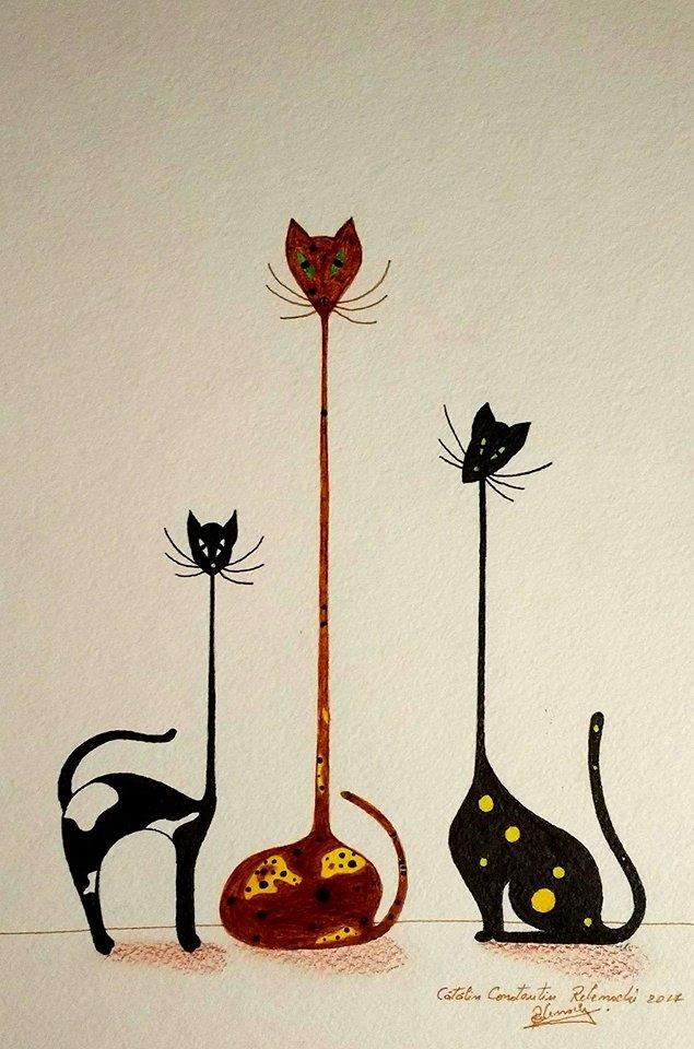 Pisicile aristocrate (tuș pe carton, 20/ 30 cm)