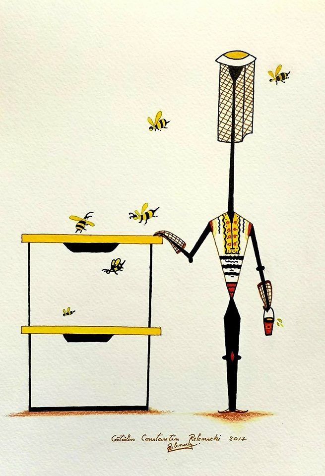 Apicultorul (tuș pe carton, 20/ 30 cm)