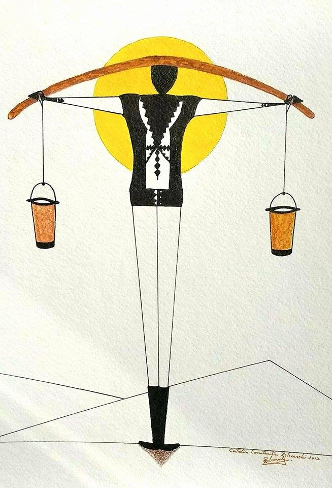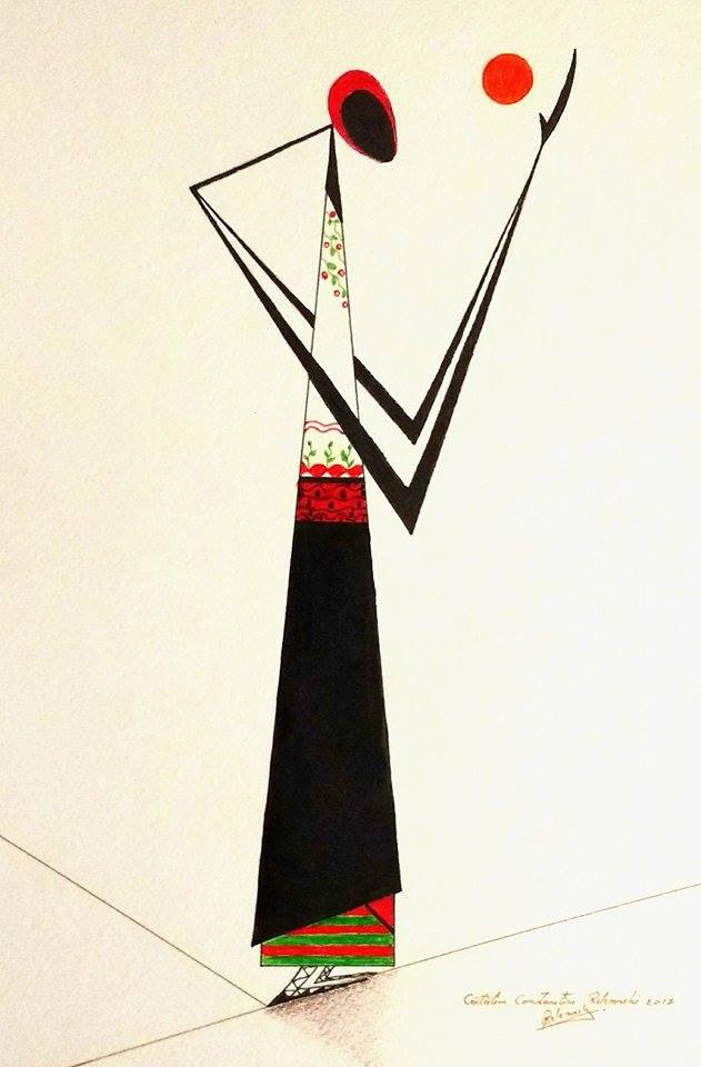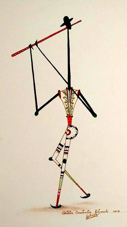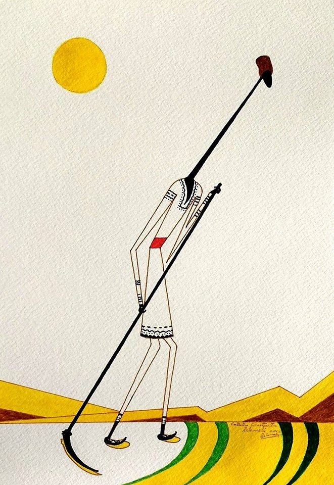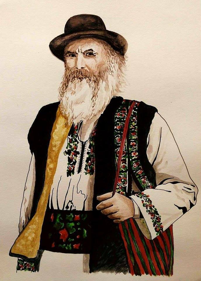 Bădiță Bucovinean (tuș și acuarelă pe carton, 20/ 30 cm)