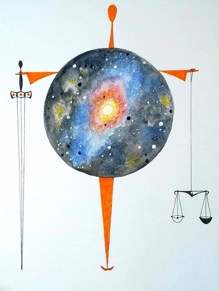 Gardianul Universului (tuș și acuarelă pe carton, 20/ 30 cm)