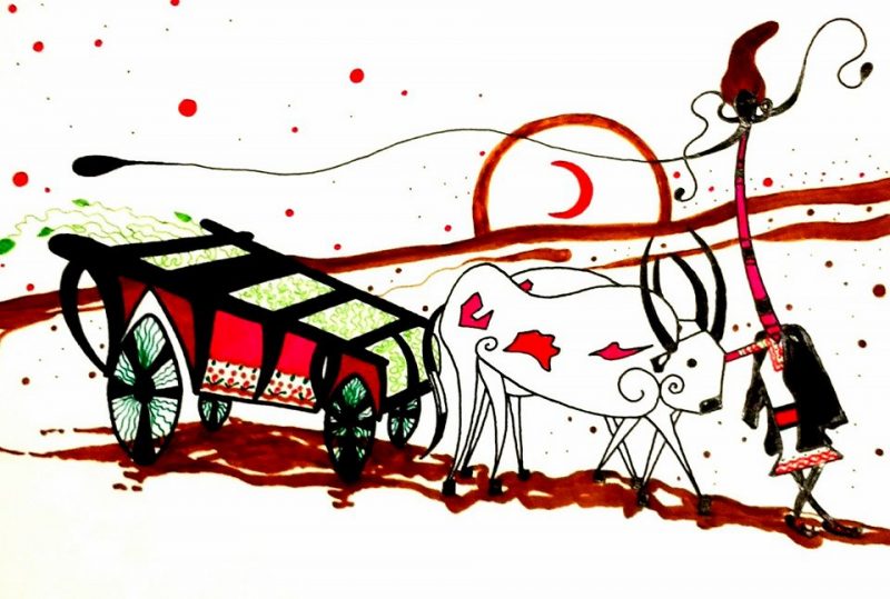 Carul cu boi (tuș pe carton, 18/ 24 cm)
