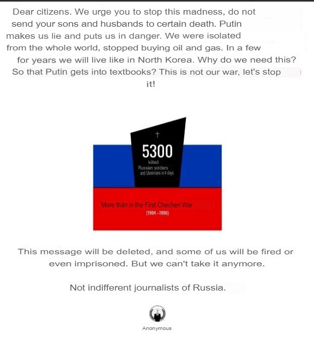 Update 13.33 Site-ul agenției Tass a fost ținta unui atac cibernetic semnat de grupul Anonymus. Hackerii au postat și eun mesaj, care a dispărut ulterior, prin care transmitea poporului rus să nu susțină planul lui Putin de a invada Ucraina.