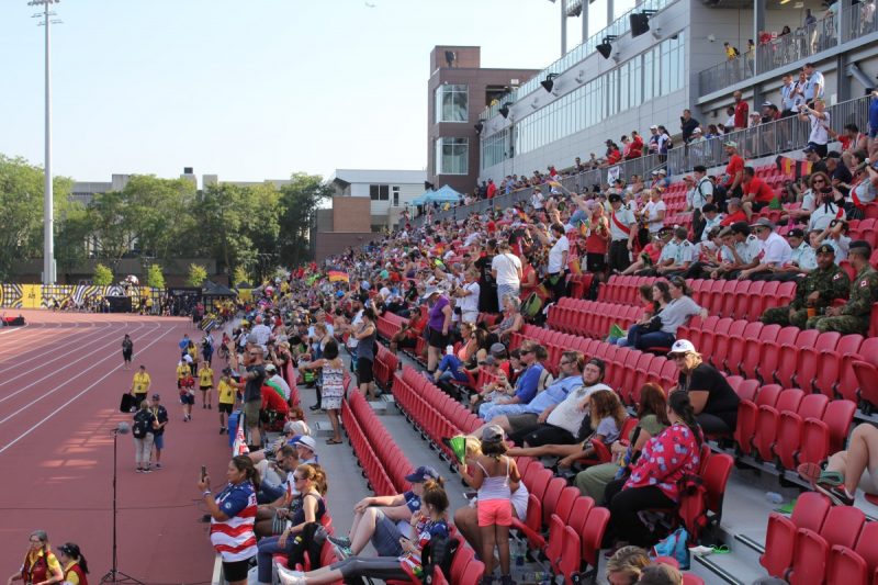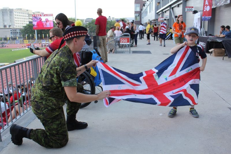 În prima zi a concursului de atletism, tribunele stadionului Universității York au fost pline cu susținători ai militarilor sportivi dar și cu nenumărați oficiali militari.