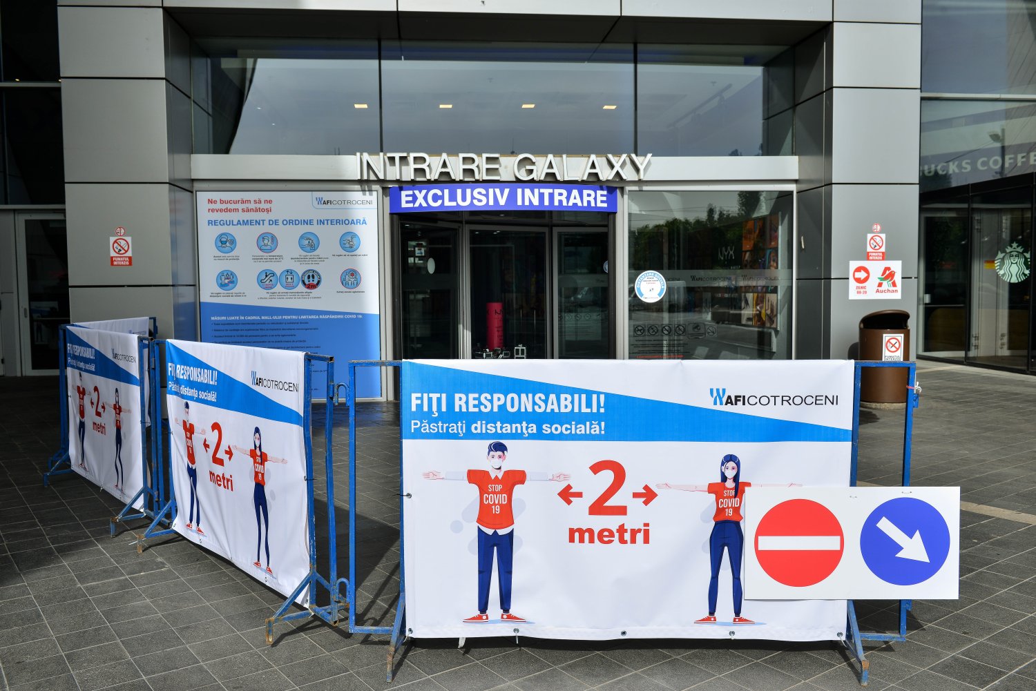 Numărul persoanelor care vor intra în cele două mall-uri va fi limitat – un client la 10 m2, iar intrarea și ieșirea vizitatorilor se va face separat.