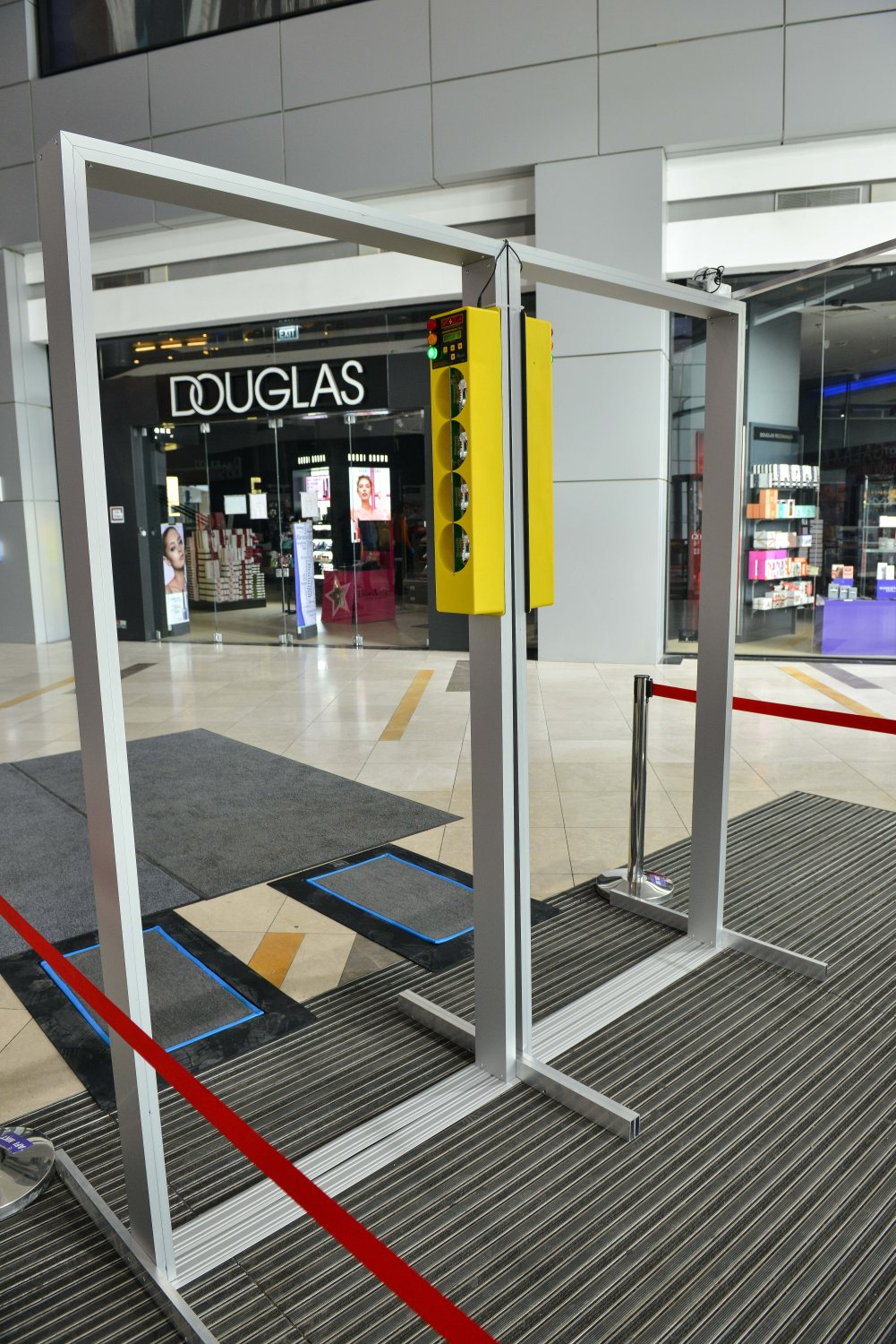 La intrarea în cele două centre comerciale clienții vor trece obligatoriu printr-o poartă termoscanner, o soluție pe bază de IR, foarte eficientă în spațiile cu trafic intens de persoane, unde li se va lua temperatura.