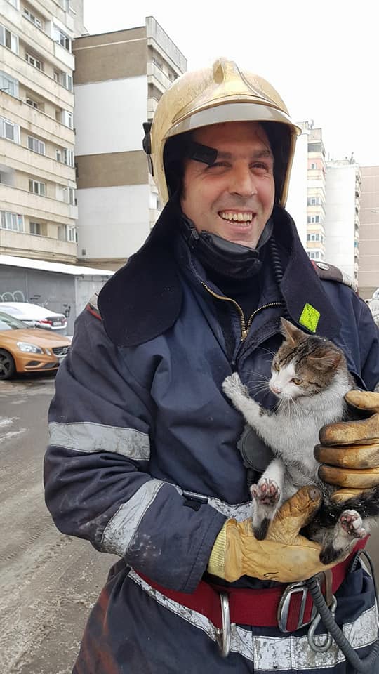 BACĂU: O pisică a fost salvată din foc de pompieri