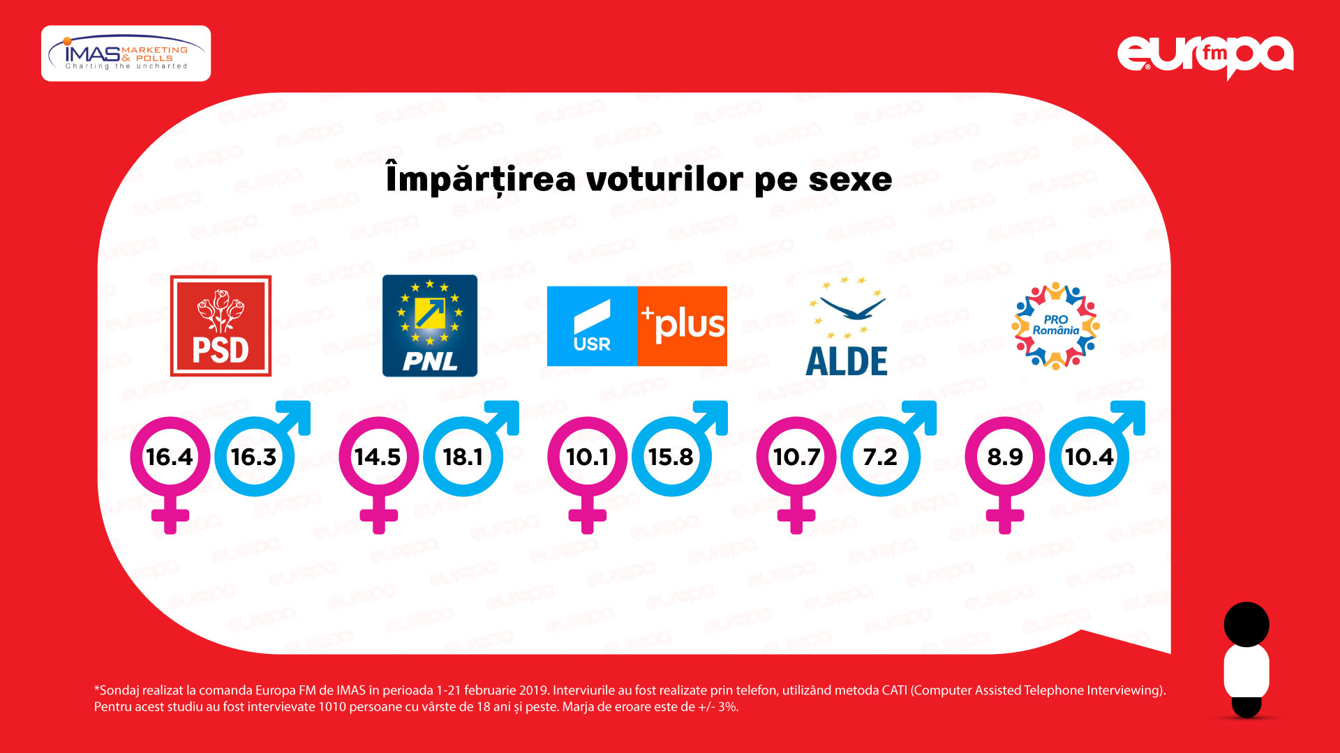 Analizând datele mai în profunzime, intențiile de vot în funcție de vârstele votanților și sexul acestora arată astfel:
