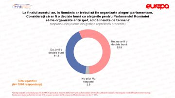Astfel, 55,9 la sută dintre cei chestionați spun că organizarea de alegeri anticipate nu ar fi o decizie bună, în condițiile în care alegerile la termen sunt programate la finalul acestui an.
