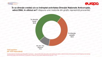 Potrivit Barometrului Europa FM, sondajul realizat de IMAS la comanda Europa FM în octombrie, 46,8 la sută dintre români cred că activitatea Direcției Naționale Anticorupție s-a îndreptat într-o direcție bună în ultimul an.