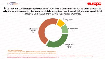 Aproape 56 la sută dintre români consideră că pandemia de Covid-19 a contribut în mare și foarte mare măsură la schimbarea ori pierderea locului de muncă pe care îl aveau la începutul anului.
