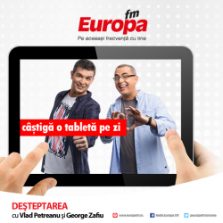 Ascultă-i pe George Zafiu şi Vlad Petreanu în fiecare dimineaţă la Europa FM şi poţi câştiga o tabletă performantă.