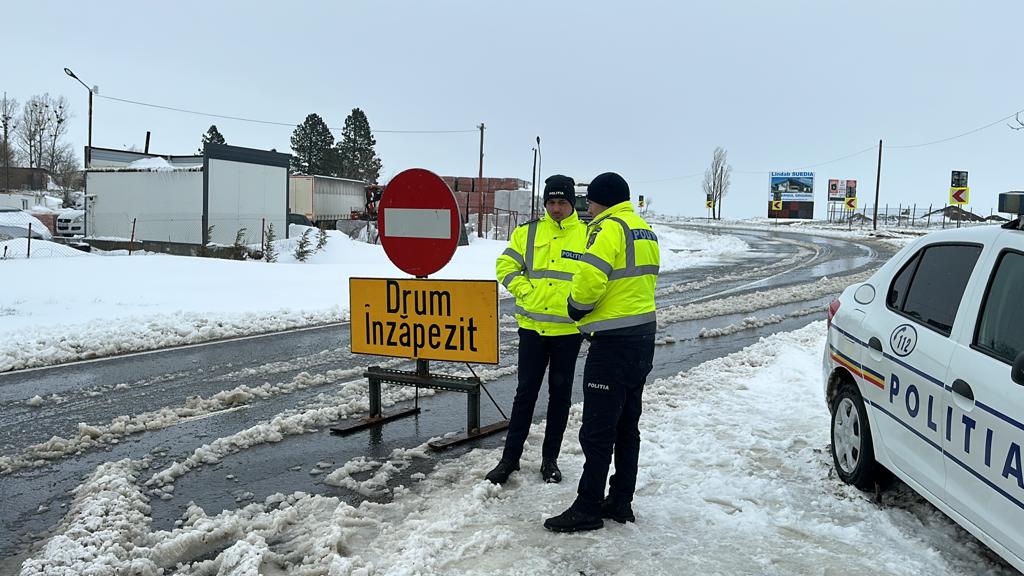 Peste 40 de persoane au fost preluate din mașini și dintr-un autocar care au rămas blocate din cauza troienelor care s-au format pe diferite drumuri din județ.