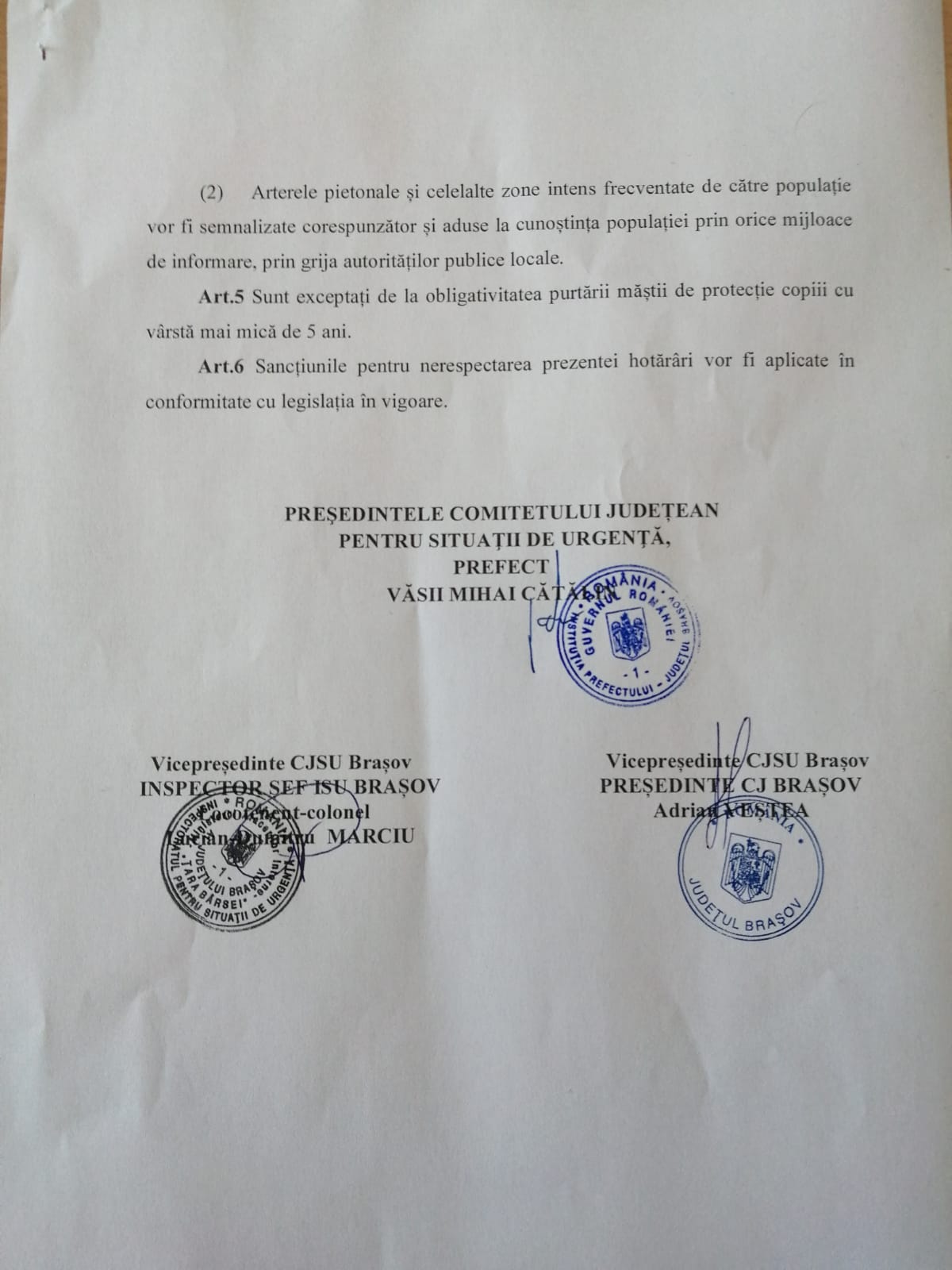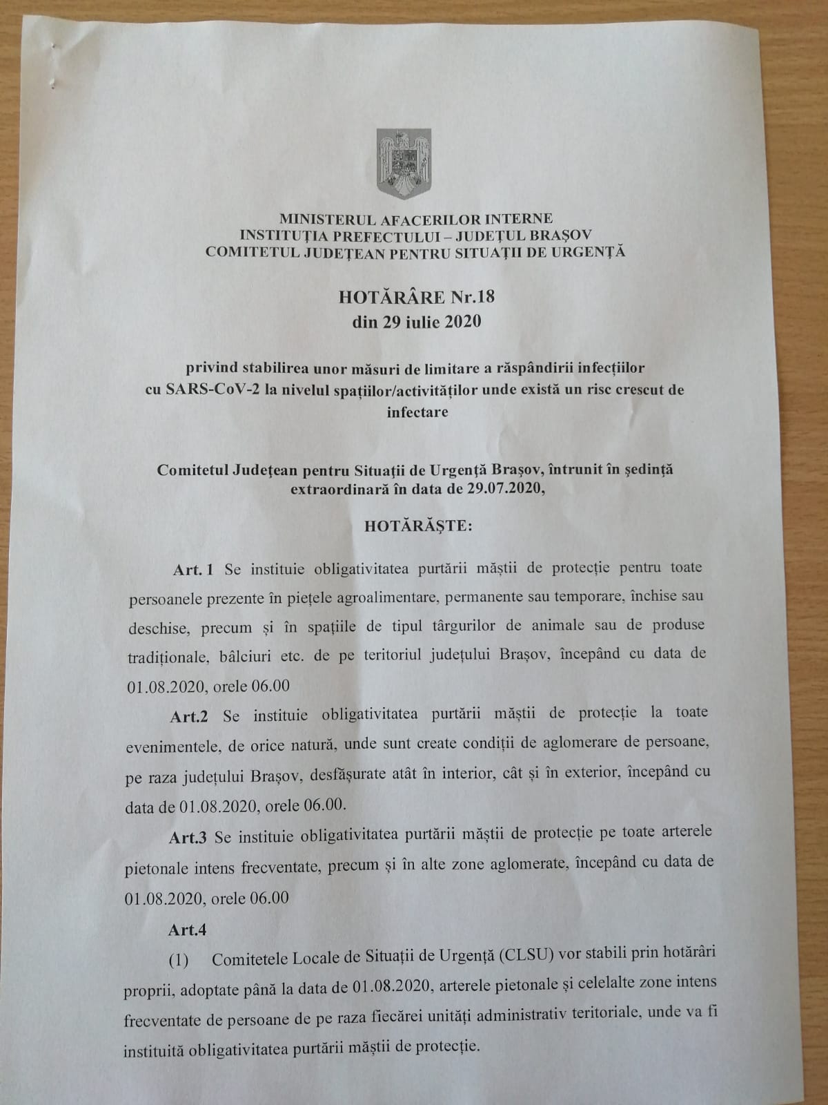 BRAȘOV: Masca de protecție devine obligatorie | DOCUMENT