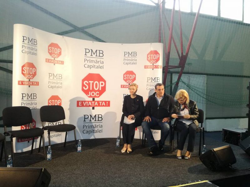 “Campania «Stop joc! E viaţa ta!», iniţiată de Primăria Capitalei, se derulează prin Proedus, centrul pentru elevi şi şcolari, centrul pentru tineret, Clubul Sportiv Municipal (CSM) în ceea ce priveşte colaborarea cu sportivii municipalităţii, de asemenea Creart şi ARCUB, în ceea ce priveşte colaborarea cu actorii şi cântăreţii.