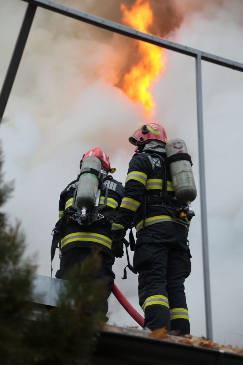 Intervenția este dificilă. Din interior nu se poate acționa, acoperișul fiind în pericol iminent de prăbușire