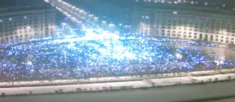 BUCUREȘTI, ora 21.00: Manifestanții aprind lanternele telefoanelor mobile (VIDEO)