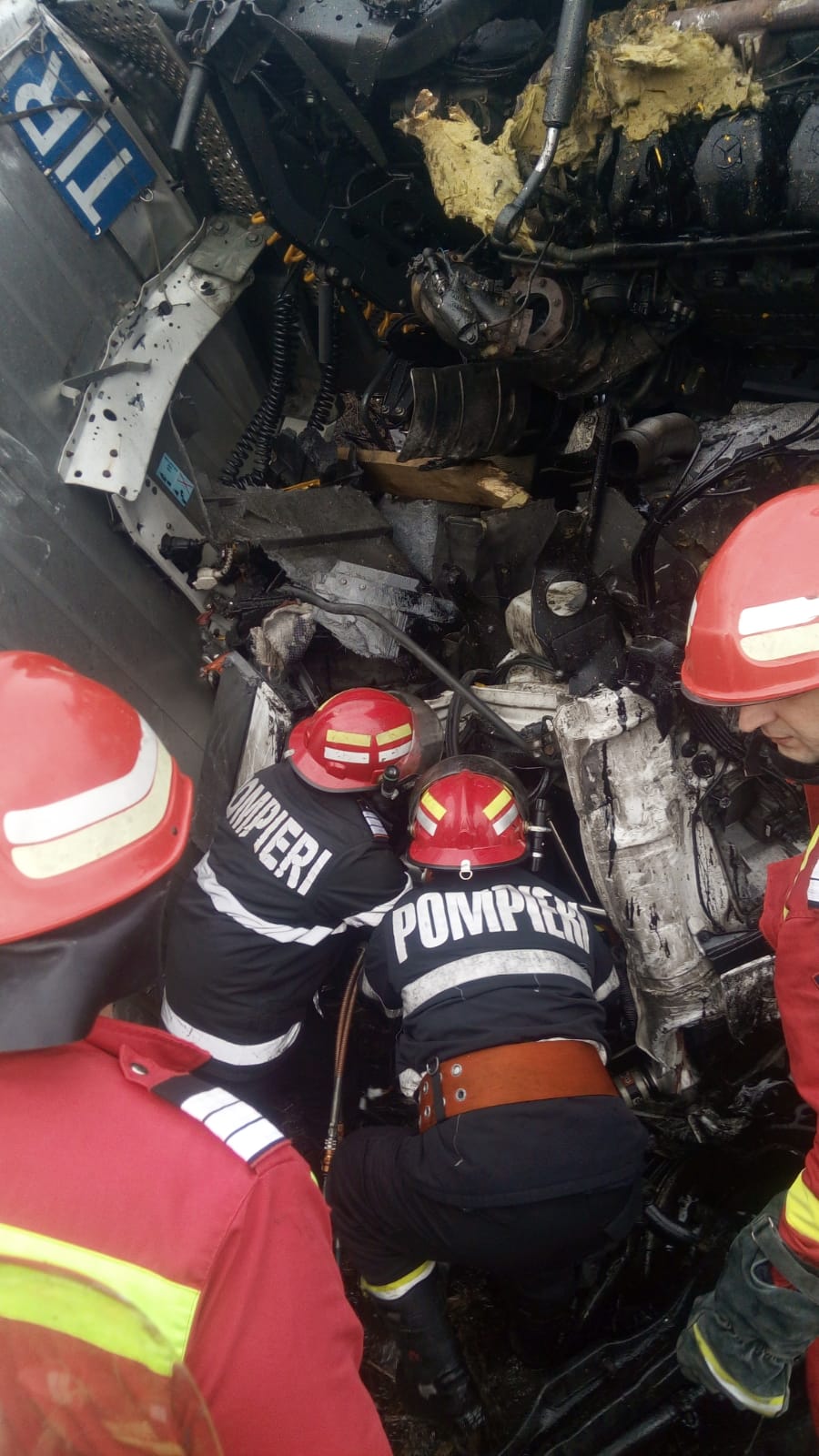 Caraş-Severin: Trei TIR-uri s-au ciocnit și au luat foc. Doi șoferi au decedat