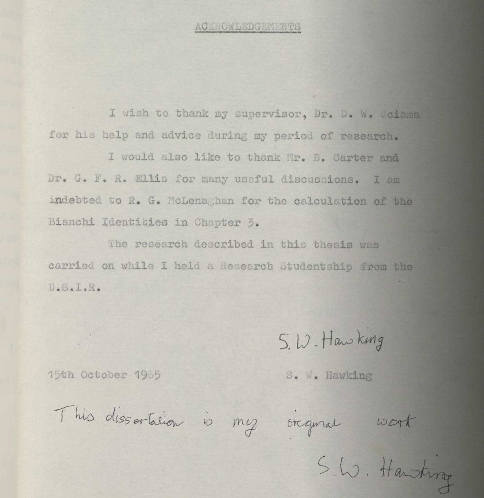 Din 2017, Teza de doctorat a lui Stephen Hawking, scrisă în 1996, ”Properties of Expanding Universes” poate fi consultată şi descărcată la liber, de pe site-ul Universității din Cambridge.