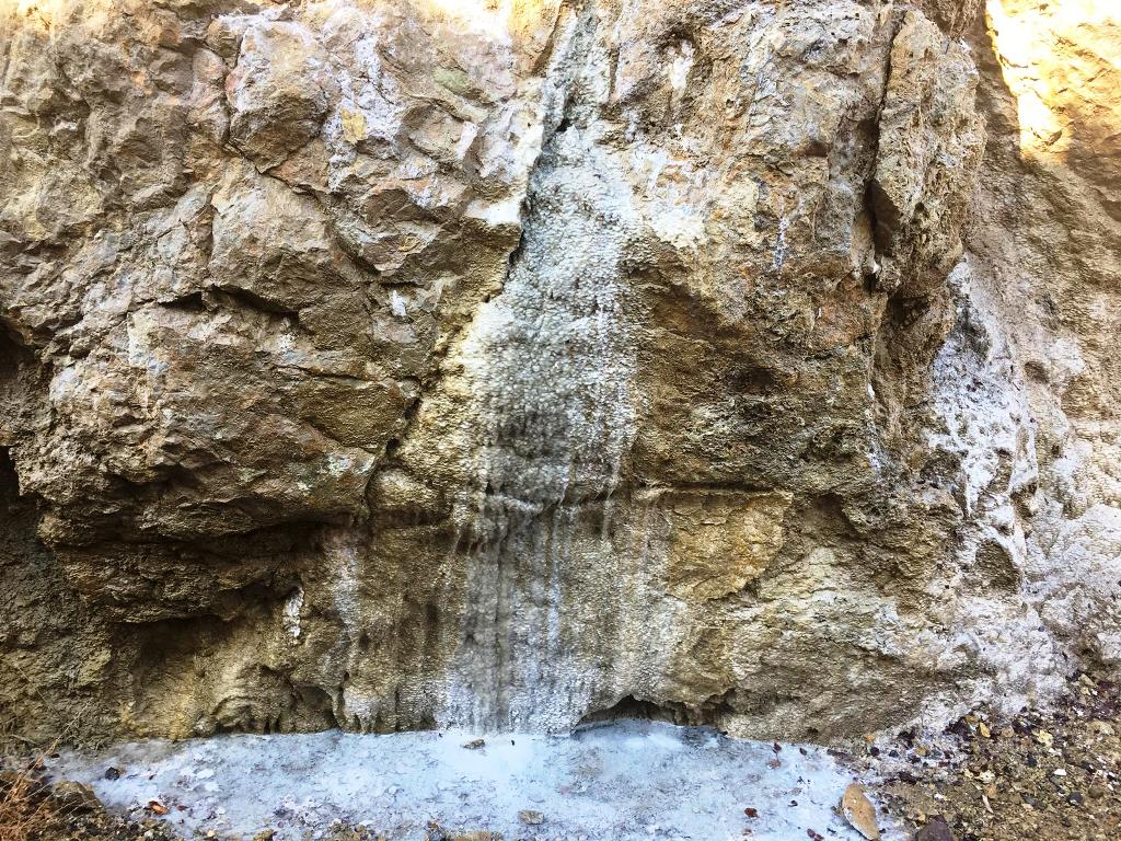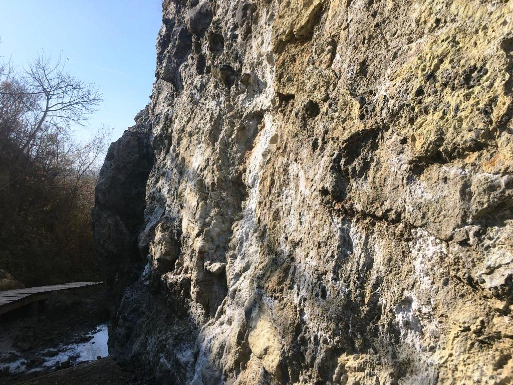 Majoritatea depunerilor calcaroase de aici sunt travertine, fără structură cristalizată. Apele calcaroase, sărate, carbogazoase, sulfuroase, pierd o parte din gazele dizolvate şi încep să depună carbonatul din calciu, într-o formă cristalizată, în dungi, numit aragonit.