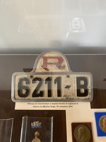 Plăcuța de înmatriculare a mașinii folosite de legionari la răpirea lui Nicolae Iorga, la 27 noimebrie 1940.