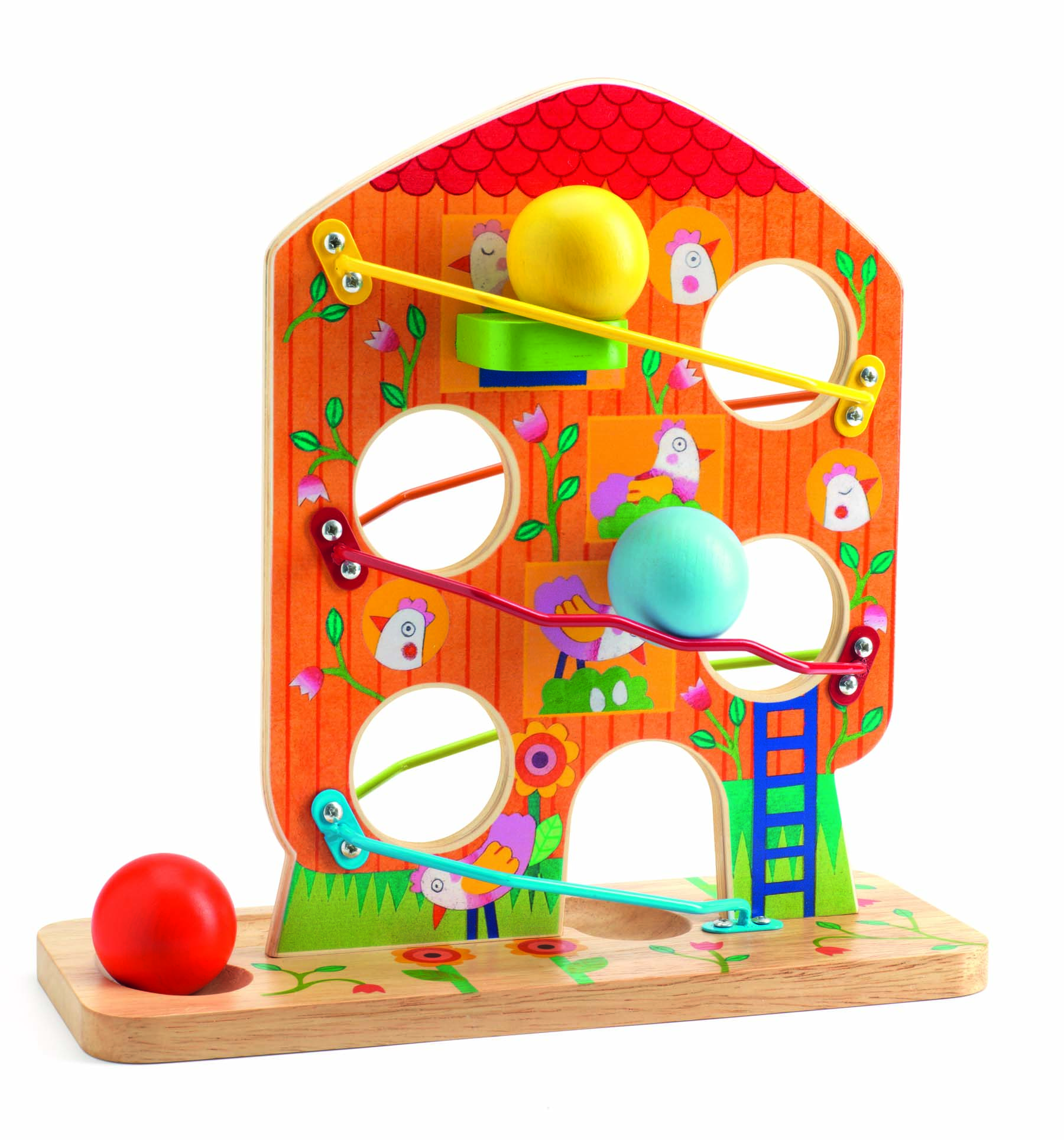 Confecționate din lemn si vopsele non toxice, piesele jucăriei bebe alunecă ouăle vor fi suficient de rezistente pentru un copil de peste 18 luni, dornic să descopere lumea din jurul lui.